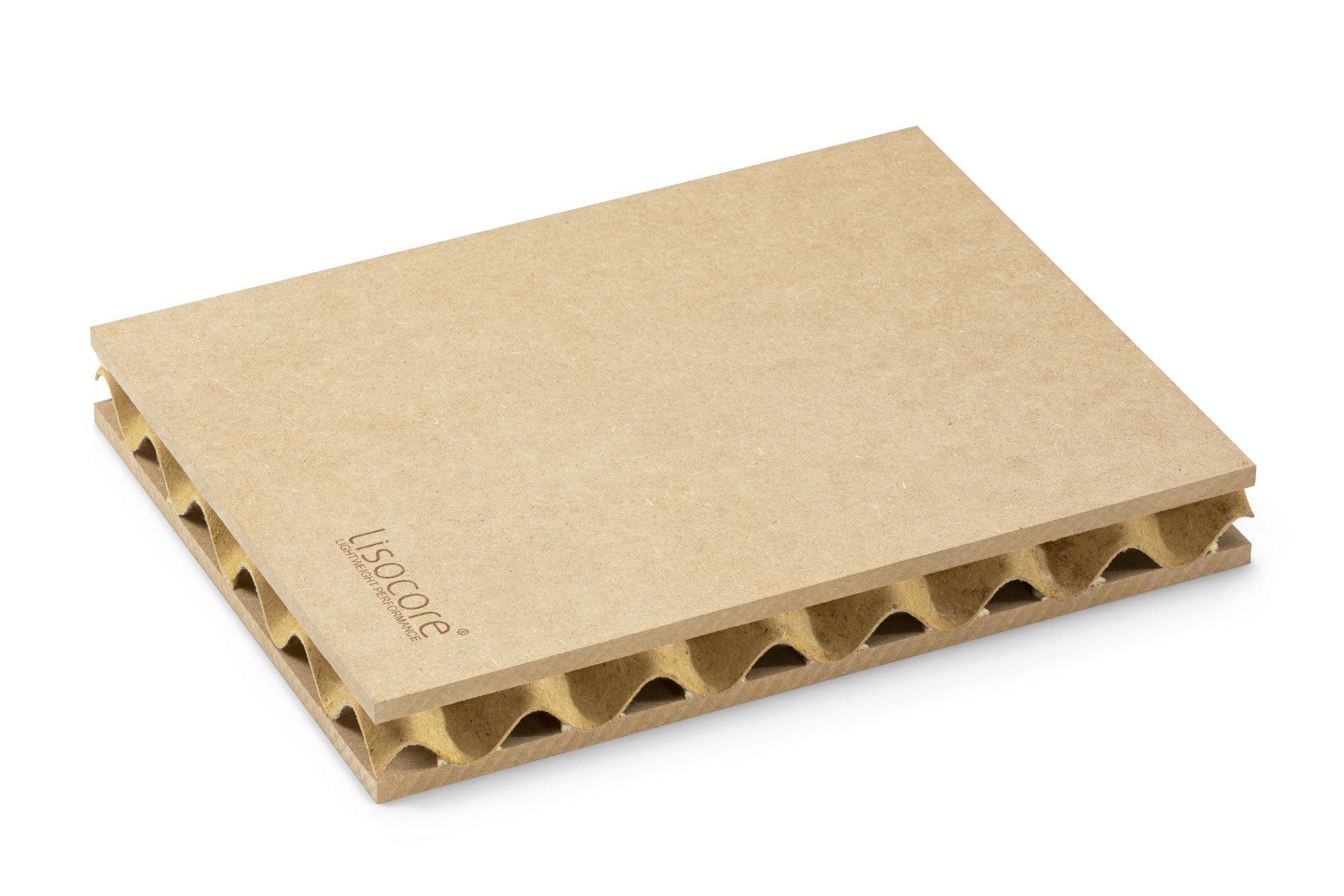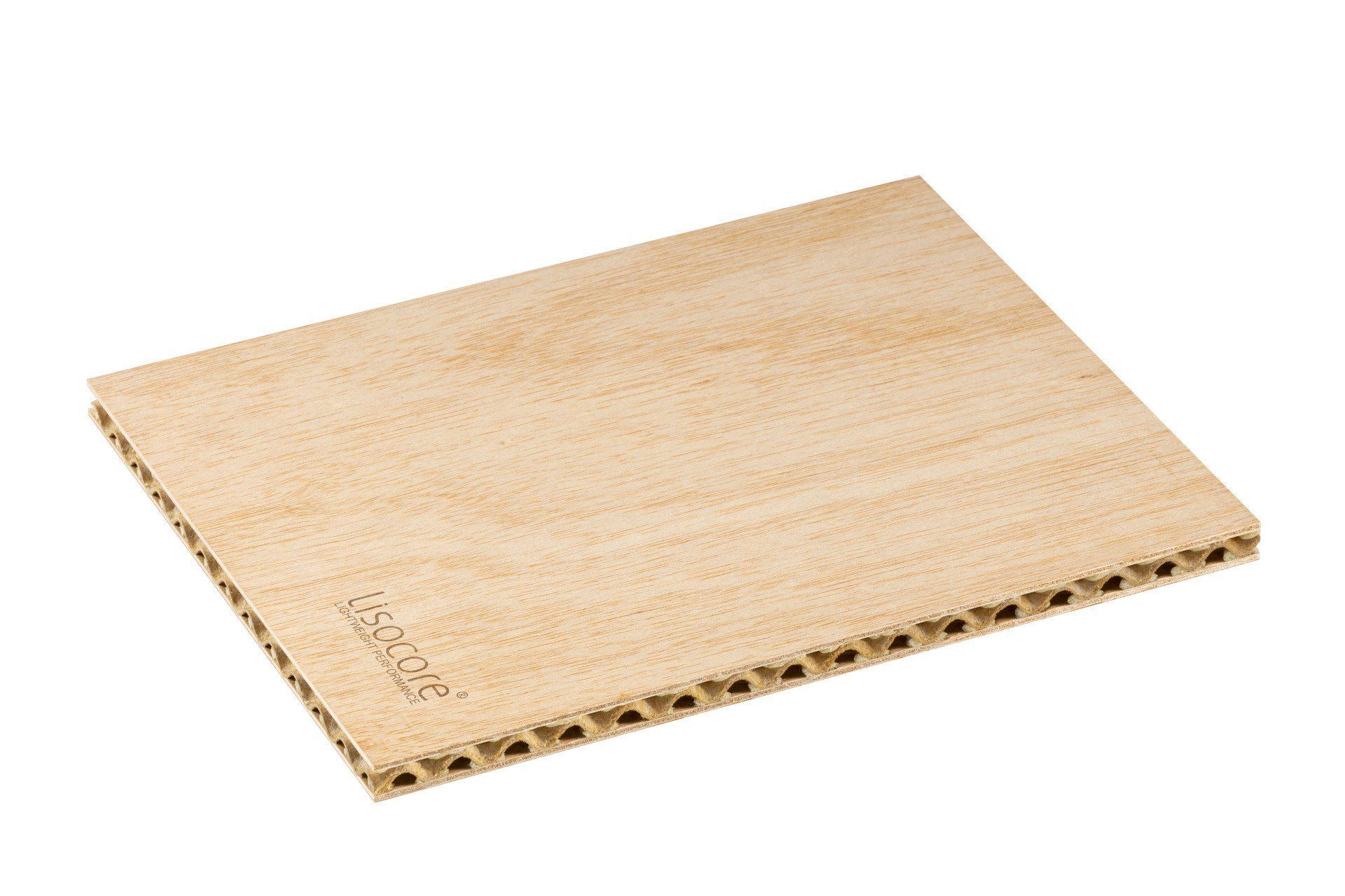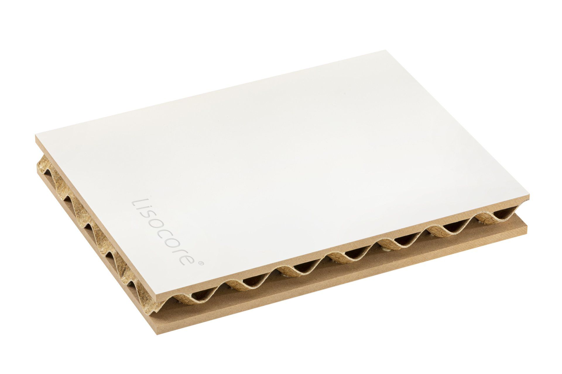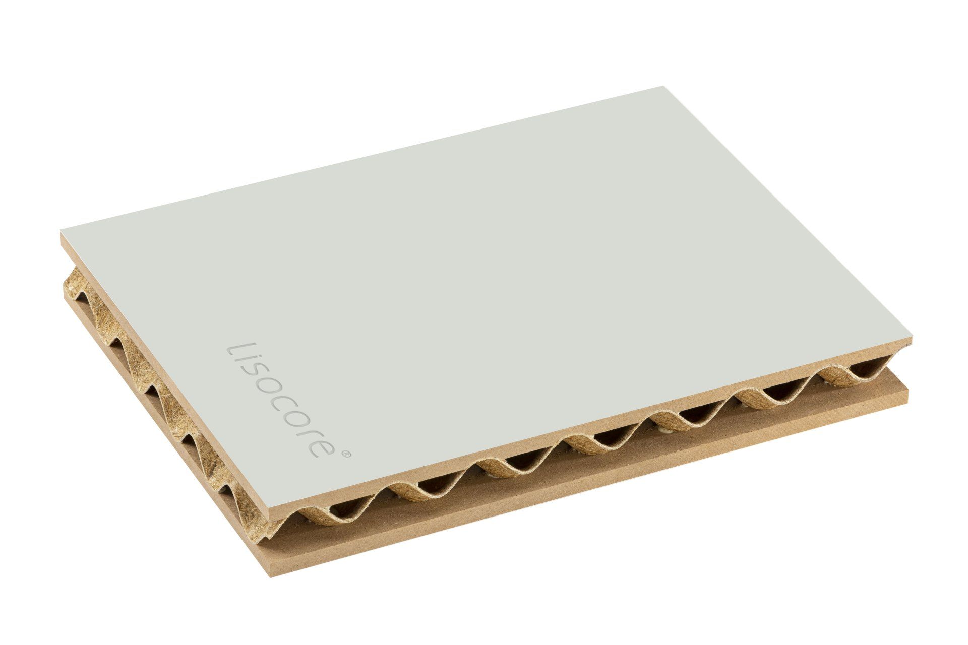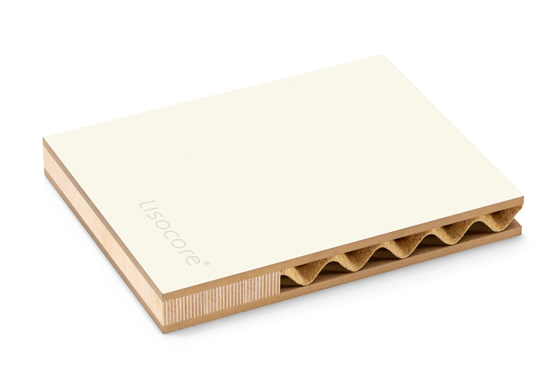 Il pannello LISOCORE® è composto da una struttura tridimensionale incollata tra due copertine. Le forature sono studiate appositamente per un perfetto adattamento della struttura interna tridimensionale che viene incollata in prossimità dei fori così da ottenere un prodotto altamente solido e più resistente rispetto ad altri materiali leggeri. Spazi cavi longitudinali, trasversali e diagonali, utili per eventuali installazioni (come passacavi), struttura multistrato, forma plasmabile in due dimensioni, flessibilità in termini di spessore e una importante leggerezza.